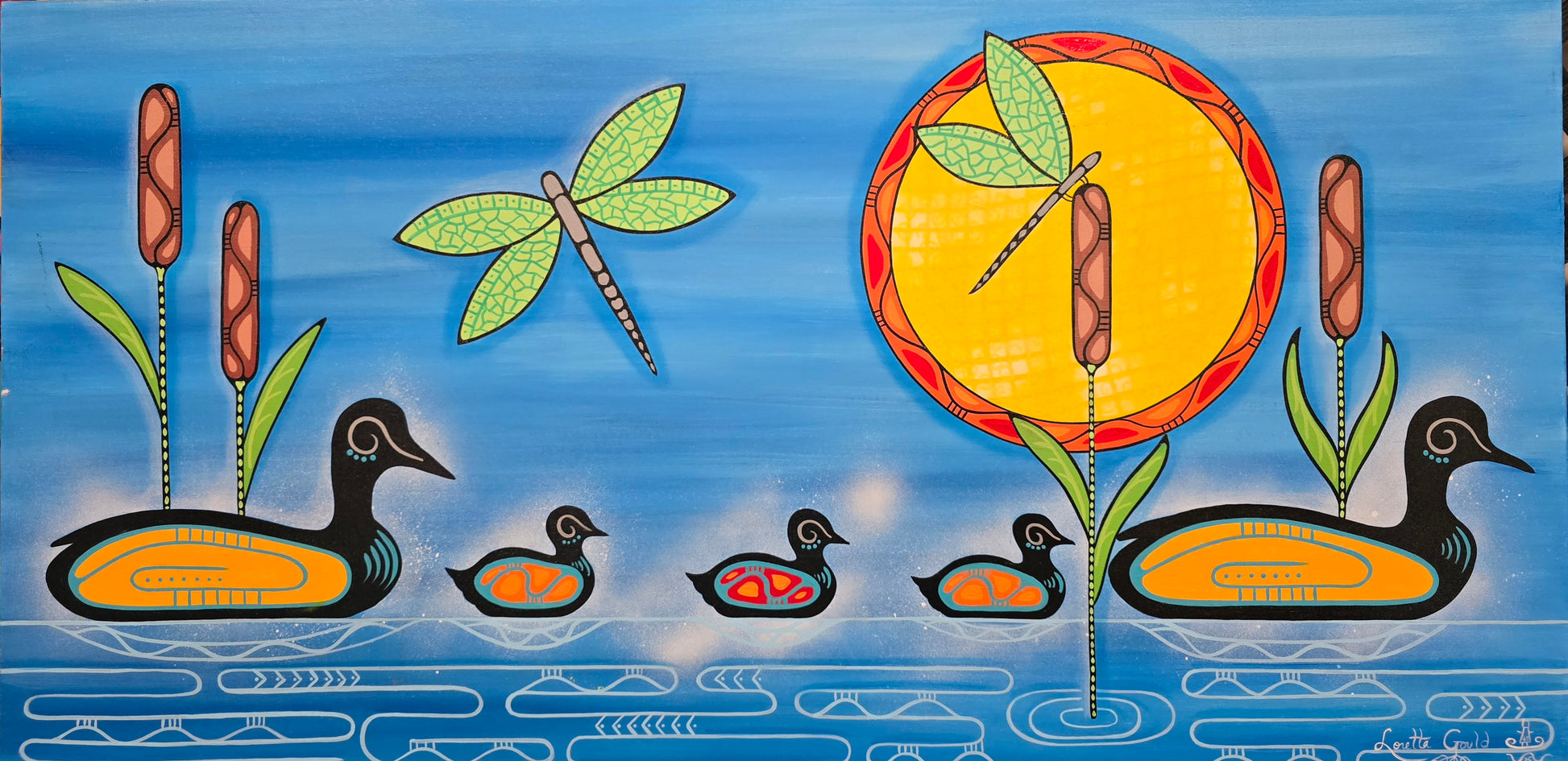 The very first loon painting ever done by Mikmaq Artist Loretta Gould.